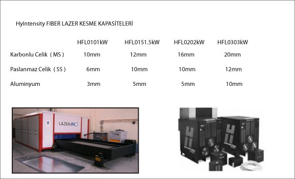 HyIntensity FIBER LAZER KESME KAPASİTELERİ